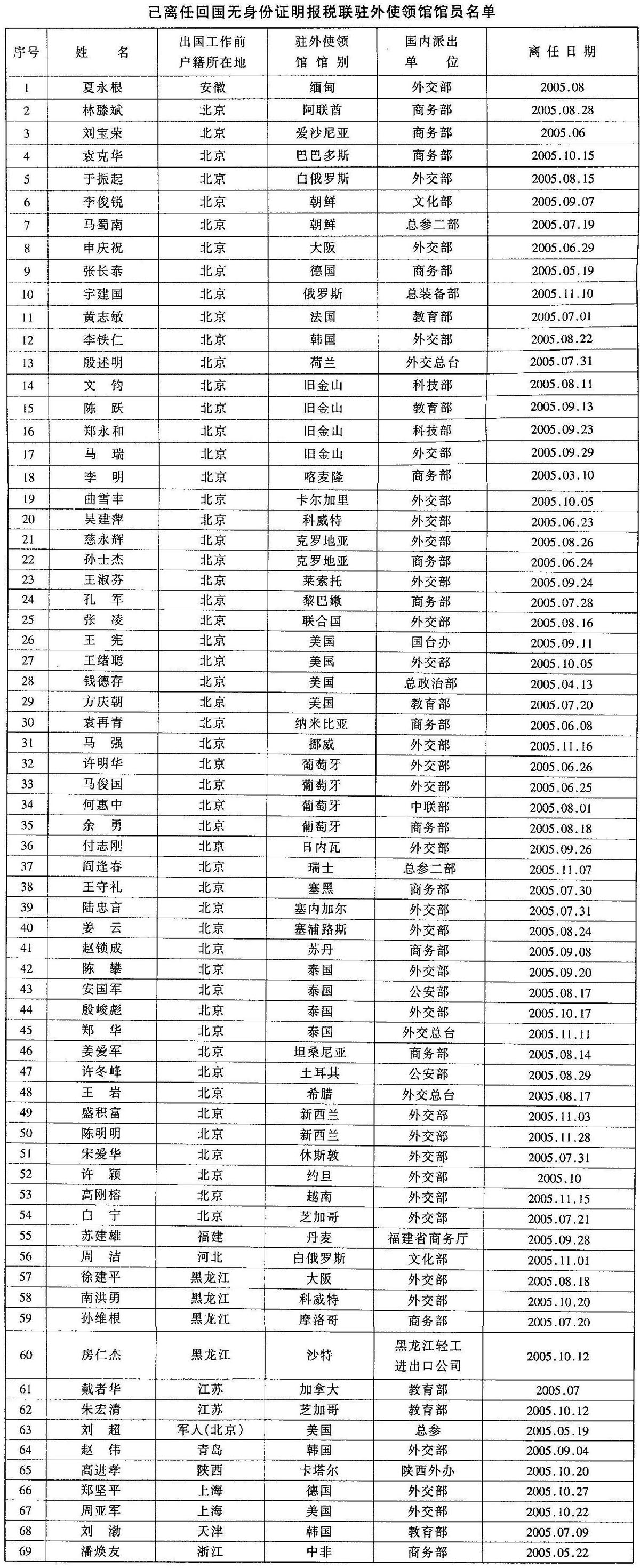 附件:1.已离任回国无身份证明驻外使领馆馆员名单