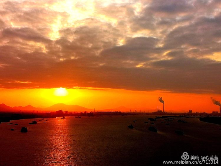 夕阳好像不甘心自己的沉沦,隐在地平线后,用自己的余晖,将江面映得殷红。