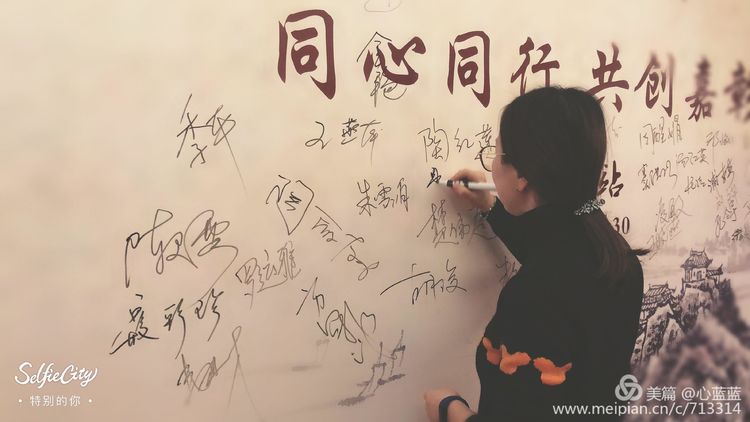 签名墙旁留个影,发现看自己越看越喜欢。