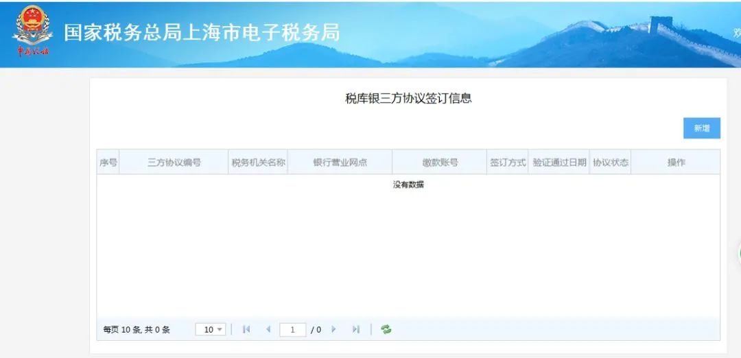 点击“新增”按钮,进入税库银三方协议申请界面,税务机关名称”选择对应的主管税务机关,注意签订三方协议的税务机关名称必须与您缴款的税务机关名称一致,否则将无法对应到申报缴税信息。网上办理仅支持居民身份证。录入正确的开户银行信息。“确认无误后,点击“提交”按钮。