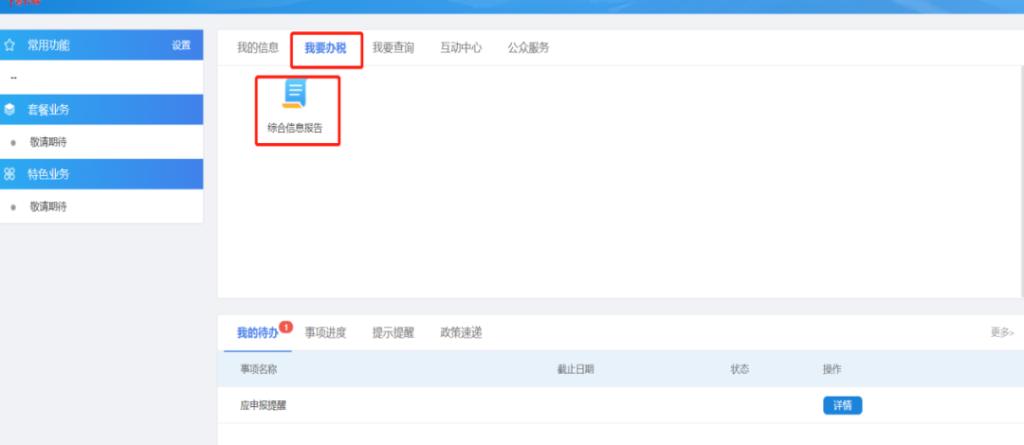 点击菜单栏中“我要办税”中的“综合信息报告”模块,在左边菜单栏里选择“身份信息报告”,然后在弹出页面右侧选择“外省(市)单位纳税人登记”进入到登记页面。