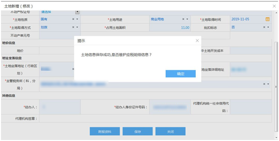 (4)检查自动带出的土地等级和纳税义务有效期是否正确。