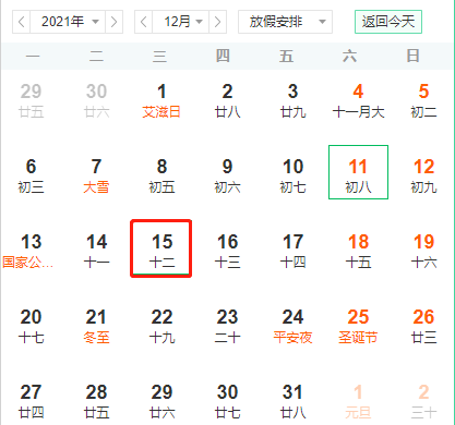 12月征收期内无连续三天以上假日,故而征收期结束日期为15日。