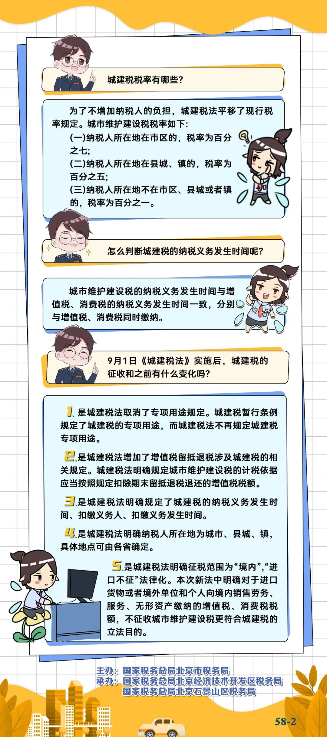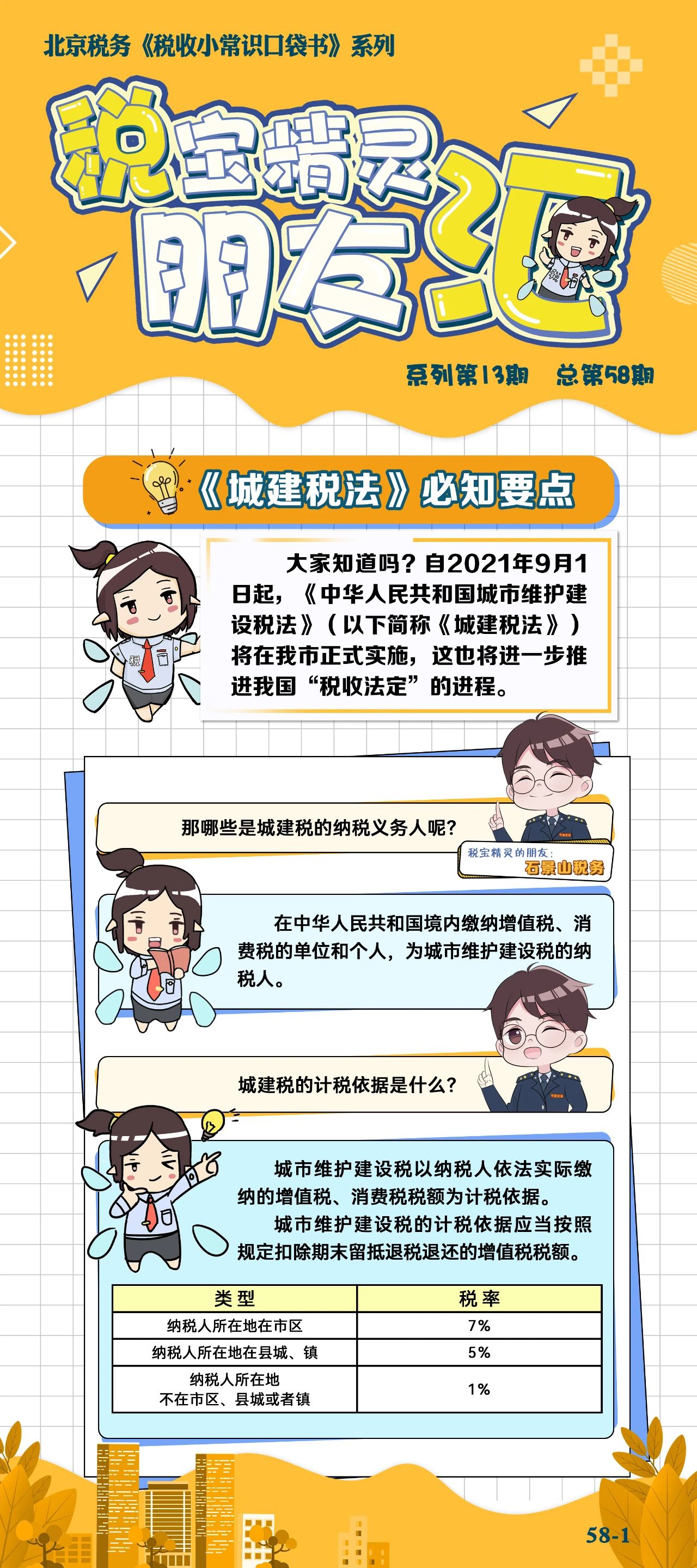 日起,《中华人民共和国城市维护建设税法》正式实施啦!哪些纳税人需要缴纳?税率是多少?今天跟着税宝精灵,一起来看看城市维护建设税法有哪些必知要点吧