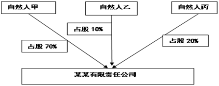 假设“某某有限责任公司”由三位自然人股东:甲占股70%,乙占股10%、丙占股20%。股权架构图如下图1所示: