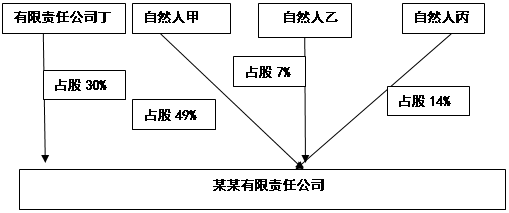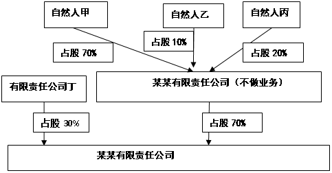 经过几年的发展后,未来扩大规模,加速发展,“某某有限责任公司”准备增资扩股,引进新的投资者丁有限责任公司,丁有限责任公司在“某某有限责任公司”中占股30%,经过增资扩股后的股权架构图如下图2所示: