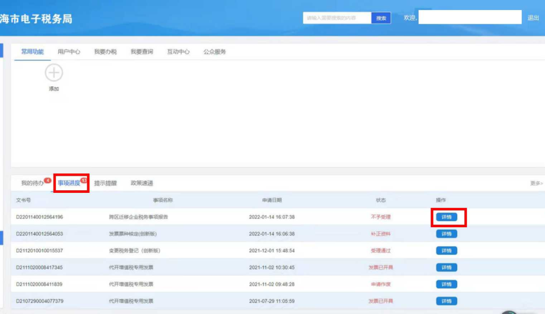 不仅是发票相关事项,只要是您在电子税务局上提交的所有事项申请都可以按照这个方法来查询进度哦。