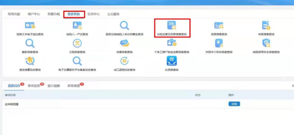 1. 在电子税务局提交申请成功的事项,可以在电子税务局首页下方【事项进度】—【办税进度及结果信息查询】中进行查询受理状态。