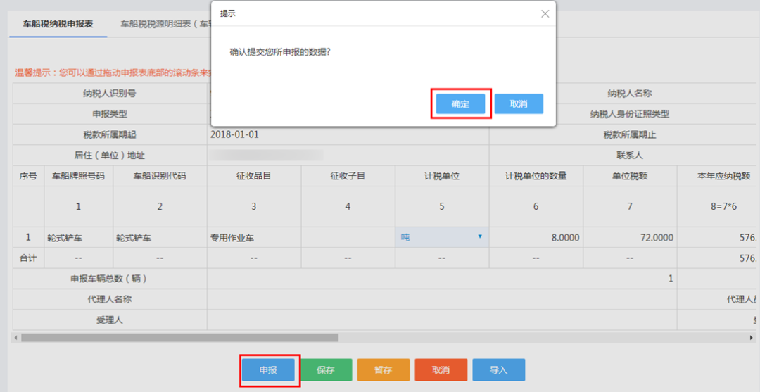 第三步 先点击左下方的【申报】,然后在弹出的对话框点击【确定】,即可完成申报。