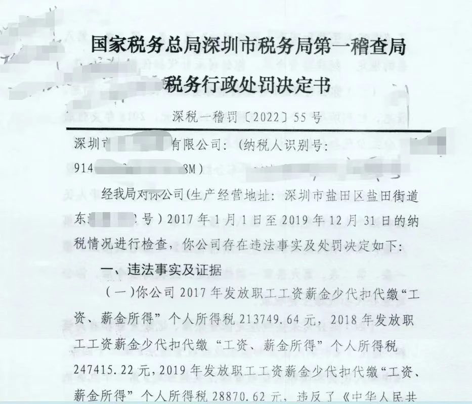 南京某公司同样因为工资问题被罚21万元(行政处罚决定书文号:宁税稽一罚[2022]11号)。