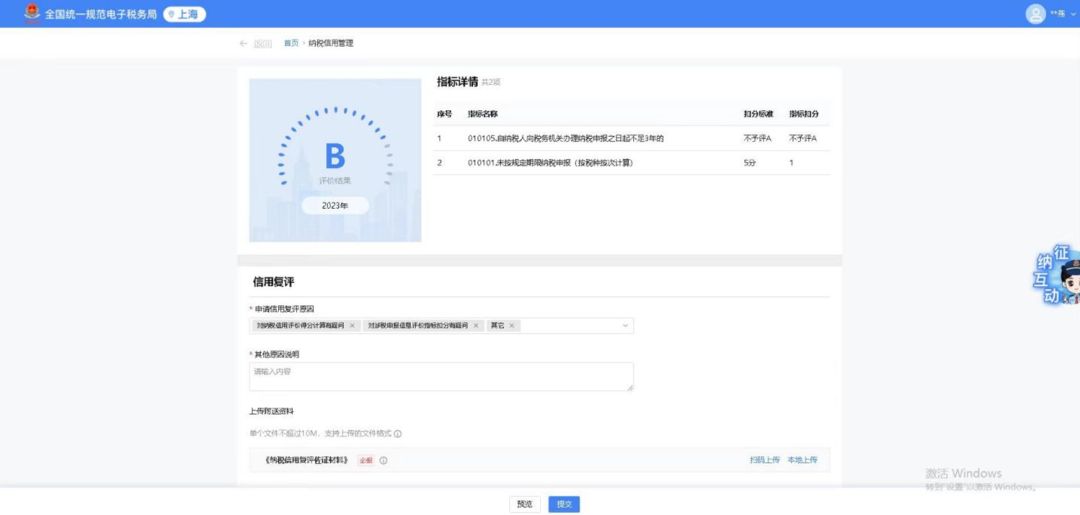 纳税信用复评具体指纳税人对纳税信用评价结果有异议,认为部分纳税信用指标扣分或直接判级有误或属于非自身原因导致,而采取的一种维护自身权益的行为。