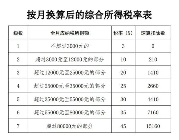 ·单独申报:以全年一次性奖金收入除以12得到的数额对照月度税率表(按月换算后的综合所得税率表)确定适用税率,应纳税额=全年一次性奖金收入X适用税率-速算扣除数