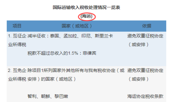 以上就是查询税收协定的具体步骤啦,除此之外,“税收条约”专栏还整理了“国际运输收入税收处理情况一览表”,详细列明了优惠项目、涉及国家(或地区)以及相关依据,有需要的可以一并了解哦~