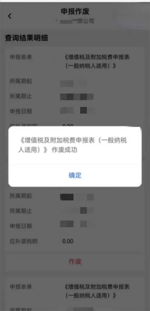 点击【作废】,系统将自动弹出“请确认”提示,点击【确定】,确定所属期时间。