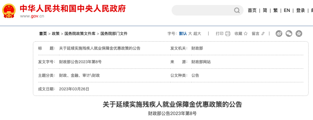 法规依据:根据《关于延续实施残疾人就业保障金优惠政策的公告》(财政部公告2023年第8号)文件延续到2027年12月份底,企业在职职工人数小于30人(含)的,免交残保金。