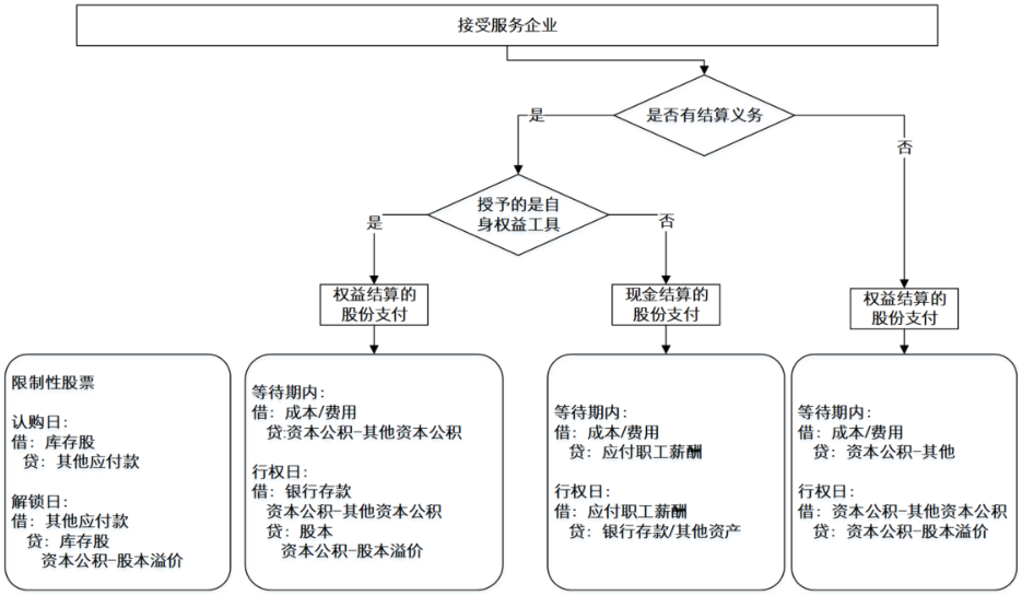 (二)接受服务企业没有结算义务或授予本企业职工的是其本身权益工具的,应当将该股份支付交易作为权益结算的股份支付处理;接受服务企业具有结算义务且授予本企业职工的是企业集团内其他企业权益工具的,应当将该股份支付交易作为现金结算的股份支付处理。