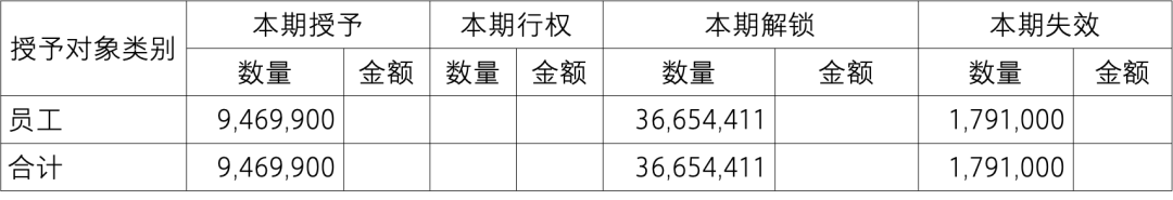 于2024年6月,因激励计划授予的922名激励对象所持有的44,393千股限制性股票限售期已满,符合解除限售条件,因此该部分限售期股票全部解禁。于2024年12月,因激励计划授予的270名激励对象所持有的10,439千股限制性股票限售期已满,符合解除限售条件,因此该部分限售期股票全部解禁。