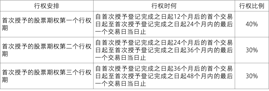 本次授予期权行权期及各期行权时间安排如下表所示: