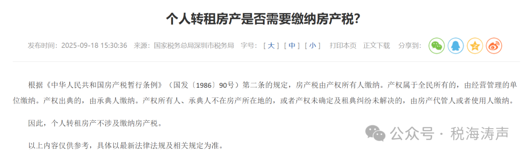 因此,个人转租房产不涉及缴纳房产税。