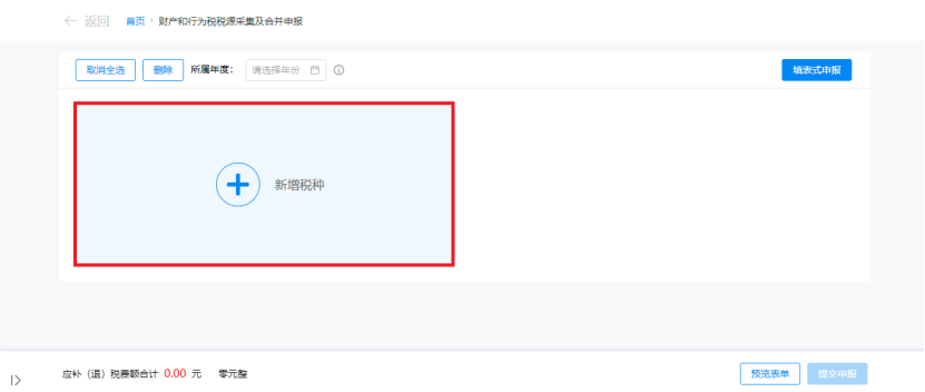 登录电子税务局后,点击【我要办税】-【税费申报及缴纳】-【财产和行为税申报】-【财产和行为税税源采集及合并申报】功能菜单。