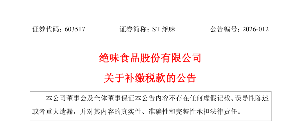 绝味食品股份有限公司(以下简称“公司”)根据国家税收法律法规的相关 要求就涉税事项开展了自查,现将相关情况公告如下: