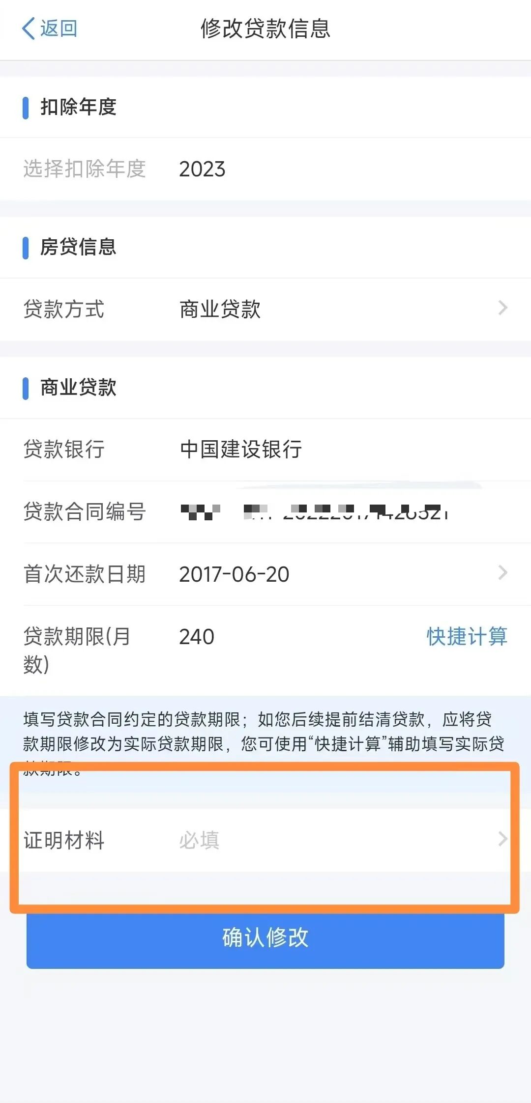 修改步骤:进入填报详情页面→点击“修改”→点击“修改贷款信息”→在“贷款合同编号”栏次填写正确的贷款合同编号→点击“确认修改”。