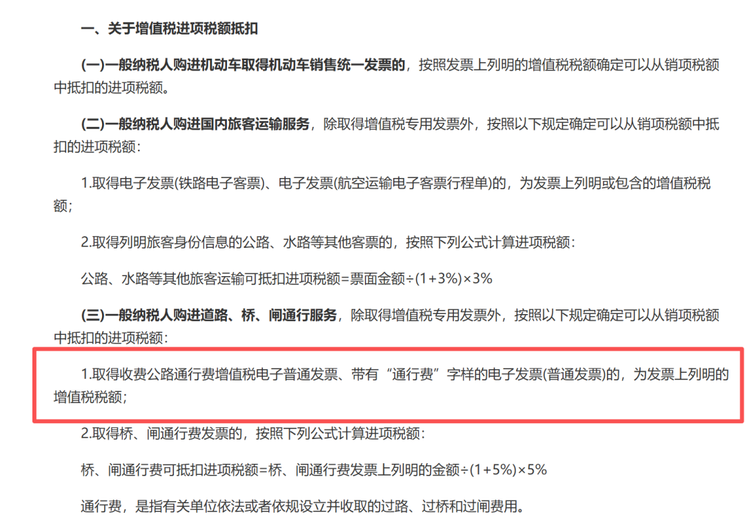 有人说,这个文件里面提到的一般纳税人购进道路、桥、闸通行服务,取得收费公路通行费增值税电子普通发票、为发票上列明的增值税税额,上面的这个发票就是增值税电子普通发票呀,上面也没有提到必须带”通行费“字样呀?